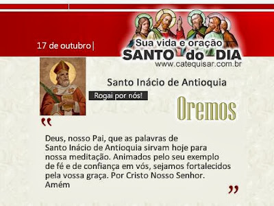 Neste dia deparamos com a fé ardente, doação completa e amor singular ao Cristo do mártir Inácio, sucessor de São Pedro em Antioquia da Síria, que desde a infância conviveu com a primeira geração dos cristãos.